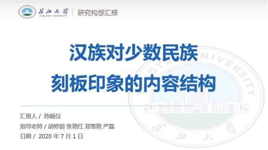 (通讯员 陈语萱)201071日,第65期社会心理学例会采取线上的方式如期举行。郑雪艳老师、严磊老师、张艳红老师以及三峡大学教育学院杨林川老师团队参加了本次例会。本次例会由朱小梦同学主持,陈婉仪同学进行研究构想汇报:“汉族对少数民族刻板印象的内容结构”。