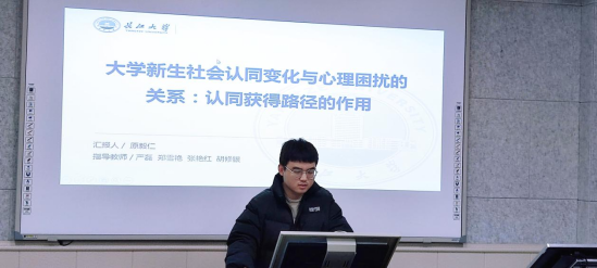 本次例会由吴新丽主持,胡汇鑫和原毅仁两位同学进行研究汇报,胡汇鑫汇报的研究设计为《规范错觉对大学生网络欺凌的影响机制》,原毅仁汇报的研究设计为《大学新生社会认同变化与心理困扰的关系:认同获得路径的作用》。