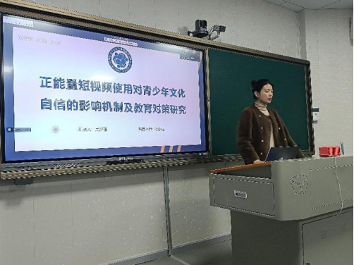 接着吴新丽的毕业论文预答辩《正能量短视频使用对青少年文化自信的影响机制及教育对策研究》,探讨正能量短视频的使用对青少年文化自信的影响,其研究一编制正能量短视频问卷,研究二通过问卷调查探讨了正能量短视频与青少年文化自信的关系,研究三通过开展正能量短视频使用的系列团辅对青少年文化自信进行干预,以提高青少年文化自信
