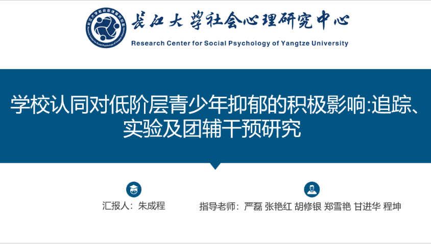 2022年国民抑郁症蓝皮书》的调查表明,18岁以下的青少年抑郁症患者占所有抑郁症患者的30%,其中一半以上是在校学生,由此可见在青少年群体中,抑郁是一种常见的情绪障碍,另外已有研究指出学校认同有助于促进心理健康。基于此,朱成程同学从社会认同视角出发,研究一采用问卷法,探讨了学校认同与低阶层青少年抑郁之间的关系;研究二采用实验法,检验了学校认同启动的实验操纵对低阶层青少年抑郁情绪的影响,进一步揭示了其因果关系;研究三拟根据上述研究结果,以降低青少年的抑郁情绪为目的,设计行之有效的团辅干预方案。