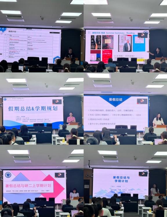 首先,研三、研二同学从实习工作、论文进展、学术阅读和课外生活等多个方面回顾了暑假生活。他们也根据自己阶段性的任务对新学期进行了规划。
