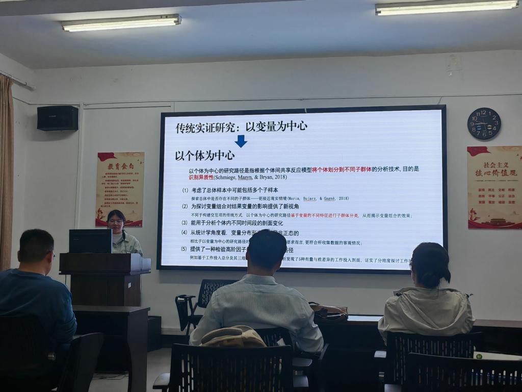 2024年1018日晚7点整,本学期青少年网络心理与行为第期例会在五教203正式开始,连帅磊老师、朱晓伟老师、甘雄老师、周婷老师参加了本次例会,还有部分研究生和部分本科生也参与了本次例会中,会议现场气氛非常热烈