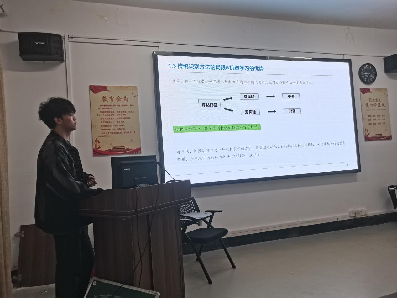 本次例会我们有幸听取了两位同学的精彩汇报。首先,蒲俊伟同学进行了开题答辩的预演练,题为《基于机器学习的青少年短视频成瘾预警模型研究》。该研究采用了机器学习的研究方法对短视频成瘾进行早期识别,构建短视频成瘾的早期预警模型,提供具有针对性的个性化预警服务。汇报结束后,连帅磊老师建议用更多的指标作为短视频成瘾的校标,并且做一个类似元分析的研究探讨短视频成瘾的影响因素,筛选出与短视频成瘾关系最密切的指标。
