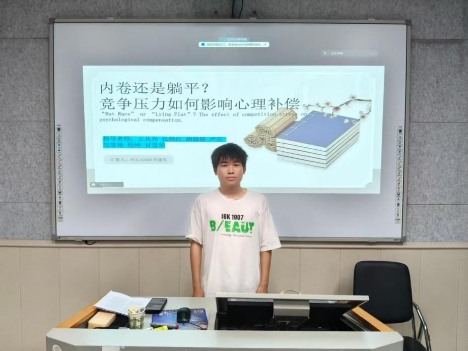 其次,李建伟同学带来《内卷还是躺平?竞争压力如何影响心理补偿》的汇报。面对竞争压力,人们选择了两种相反的策略,分别是内卷与躺平。本研究将竞争压力分为竞争结果压力与竞争过程压力。基于心理补偿理论,竞争结果压力威胁个体的自尊,促使其选择流动补偿策略,形成内卷效应;竞争过程压力威胁个体的幸福感,促使其选择逃避补偿策略,形成躺平效应。