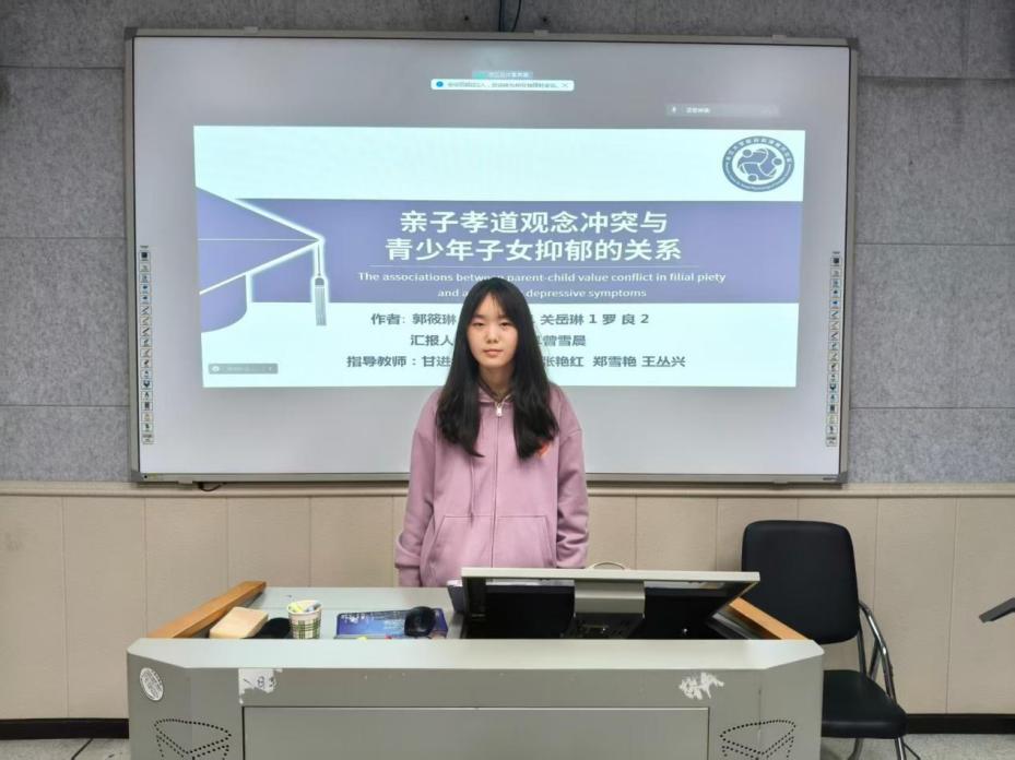 首先,曾雪晨同学汇报了《亲子孝道观念冲突与青少年子女抑郁的关系》。孝道是维系家庭关系的基本准则,会影响子女的心理健康,但亲子孝道观念可能存在冲突,其影响尚未可知。通过亲子配对的纵向研究设计,研究者发现当亲子间相互性孝道或权威性孝道不存在冲突时,孝道观念的水平并不影响子女抑郁水平;当亲子孝道观念存在冲突时,在父-子相互性孝道、父-女及母-女相互性和权威性孝道上均表现出当父母孝道水平高于子女时,子女的抑郁水平更高。