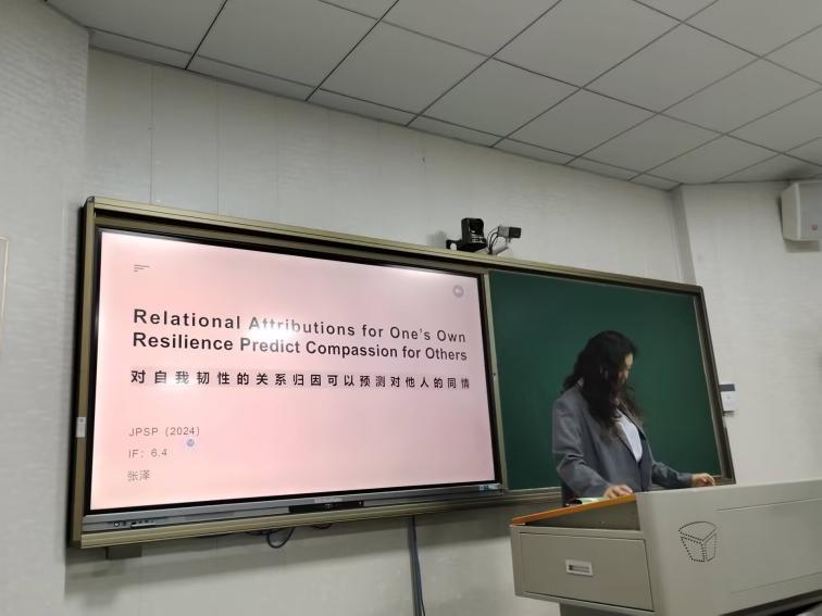 2025年4月13日晚7点整,本学期青少年网络心理与行为第五期例会在11教205正式开始,朱晓伟老师、甘雄老师参加了本次例会,还有部分研究生和部分本科生也参与了本次例会中,会议现场气氛非常热烈。 本次例会我们有幸听取了三位同学的精彩汇报。首先,蒲俊伟学长对主题为《Routes to momentary self-esteem in adolescence: Links with interpersonal perceptions of liking and personality metaperceptions within social interactions》的文献进行了分享汇报。这篇文章探讨了青少年在初次社交互动中即时自尊的形成路径,重点分析了两种人际感知(元喜欢和他人感知的喜欢)的作用,以及人格元感知(元准确性和元积极性)的影响。结果显示,元喜欢与即时自尊显著相关,而他人感知的喜欢则无显著关联。此外,元积极性通过元喜欢间接影响即时自尊,而元准确性无显著影响。 其次,夏领域学姐分享了主题为《Effects of Parental Childhood Maltreatment on Children's School Adaptation: An Intergenerational Persp....》的文献。文献主要探讨父母童年虐待对儿童学校适应的代际影响,以及良性嫉妒和恶意嫉妒的中介作用。结果部分显示,父母单独经历童年虐待均对儿童学校适应有负面影响,但共同作用时仅父亲的影响显著。中介效应方面,父亲通过儿童的良性嫉妒间接影响学校适应,母亲则通过 “母亲良性嫉妒→儿童良性嫉妒” 的链式中介作用影响。汇报过后,夏领域学姐对自己的疑问—在文献中只有一个家庭系统理论支撑研究是否显得单薄向两位老师请教,朱晓伟老师和甘熊老师表示一个大理论支持实验是可以的。 最后,张泽学姐分享了主题为《Relational Attributions for Ones Own Resilience Predict ’ Compassion for Others》的文献。文章将自我韧性归因分为内部、关系性和情境性归因。通过 7 项研究深入探讨了自身韧性的归因方式与对他人同情心之间的关系,均发现关系性归因能够显著正向预测同情心。研究发现感激在关系性归因与同情心之间起到了关键的中介作用。 到此,本期例会圆满结束,相信大家都收获满满,让我们一起期待下周的文献汇报吧!