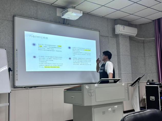 其次,饶仕杰同学分享了心理学报上的一篇文章,题目为《中国社会中“内卷”现象的个体心理内涵及其特征维度》,从文化心理学视角出发,通过4项子研究,采用访谈法和问卷调查法,明确了中国社会“内卷”的心理内涵与特征维度。研究发现,“内卷”包含资源稀缺、社会规范、心理压力和竞争行为四个维度,且感知越强,内卷行为倾向越高。