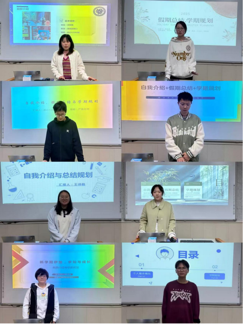 最后,本科生科研助理们进行了汇报,包括自我介绍、假期总结、学期规划三个方面。在学期规划方面,同学们对新学期的努力方向进行了详细规划,包括书籍阅读、考级考证、学习等方面。