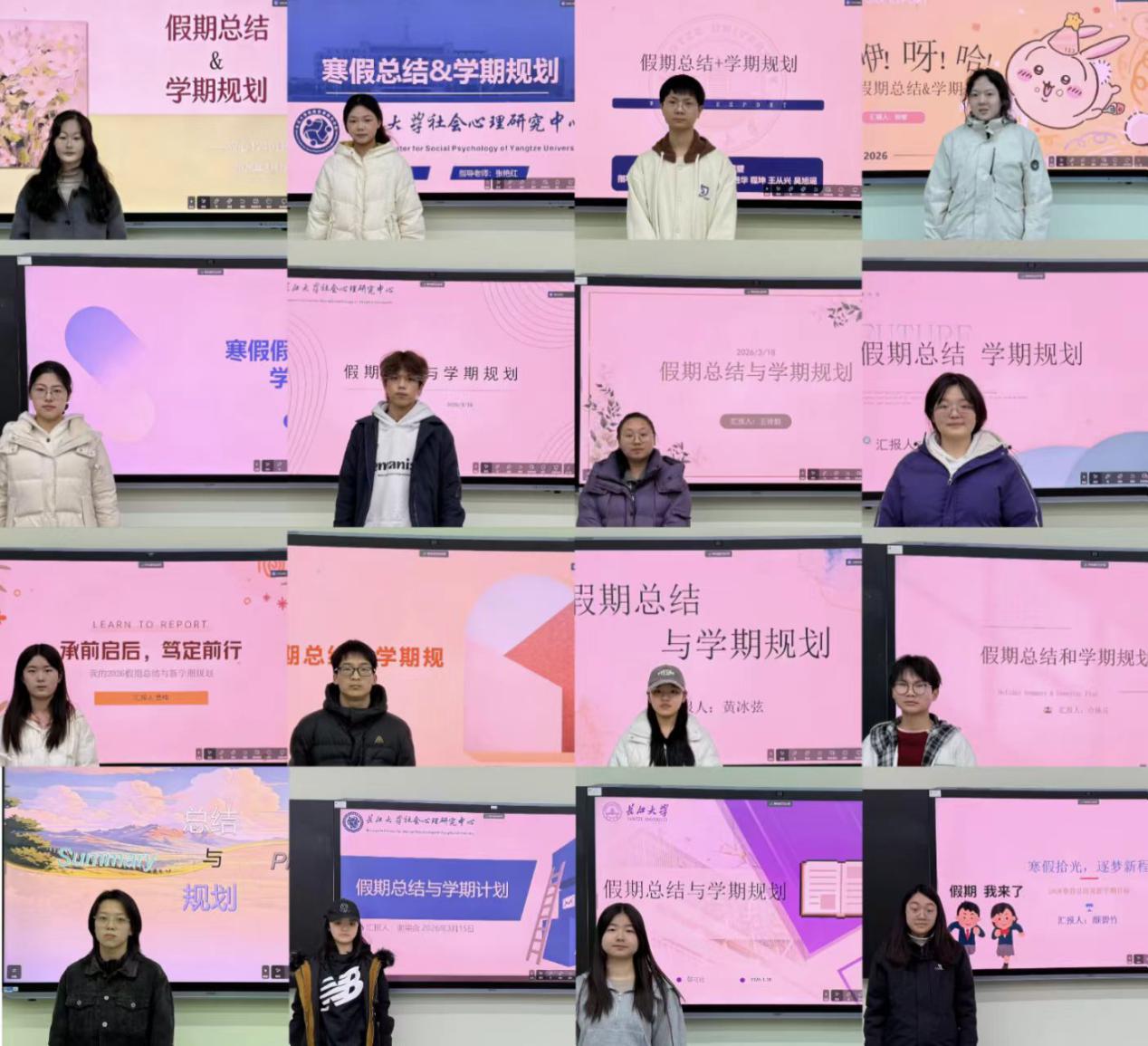 (通讯员:李咏颖)2026年3月18日19时00分至21时00分,第202期社会心理学学术例会在球王会体育平台网页东校区16教A101室如期举行,本次例会采用线上线下相结合的模式,由陈傲霜同学主持,主题为“假期总结与学期规划”。参加本次例会的老师有严磊老师、郑雪艳老师、甘进华老师、王丛兴老师、吴旭瑶老师,学生有9名心理学研究生、16名本科生科研助理。 首先,由研一、研二的同学进行假期总结与学期规划。同学们从论文进展、实习工作、文献阅读、技能训练、娱乐放松等多个方面分享了他们丰富多彩的寒假生活。同时,同学们也向大家呈现了本学期的学习规划,研二同学的规划侧重于毕业论文进展与教学实习,研一同学的规划则侧重于教学实训、专业技能训练、知识储备等方面。 其次,由本科生科研助理们进行假期总结与学期规划。本科生同学们的寒假生活更加丰富多彩,包括旅游、做手工、做家务等方面。当然,娱乐之余,同学们也没有懈怠自身的学业,在假期中他们仍然坚持阅读书籍和文献,并定期向导师汇报自身的学习情况。汇报的最后,本科生同学们也根据自身的学段制定了新学期的规划,明确了自身的阶段性任务。 汇报结束之后,五位老师为中心的同学们送上了新学期的寄语。郑雪艳老师强调总结规划要具体化、注重分享,建议社心公众号增加科普资源,并开通视频号以将心理学知识融入日常生活;吴旭瑶老师希望同学们“好好学习,天天向上”;严磊老师指出总结规划存在形式化问题,建议提前给老师审阅、细化目标、规范汇报细节,摒弃形式主义;甘进华老师嘱咐同学们制定更加清晰、成熟、完善的学期计划,并兼顾身体健康,做到劳逸结合;王丛兴老师则希望同学们系统地学习科研知识,提升心理学学科素养。 在本次例会中,同学们进行了假期总结与学期规划,老师们为同学们送上了开启新学期的锦囊妙计。希望同学们能听取老师们的建议,并将新学期的规划落到实处,顺利开启新学期,确立新目标,踏上新征程,做一匹奔驰的黑马。至此,第202期社会心理学学术例会圆满结束,同学们我们下周再见!