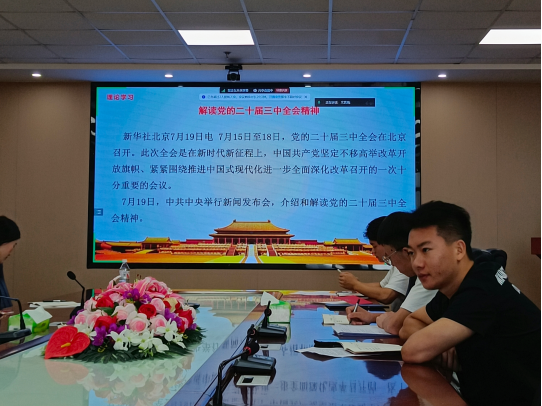 会议伊始,由文艺萌同志带领大家重温入党誓词。随后,由文艺萌同志带领大家集体学习《中国共产党章程》,通过对《中国共产党章程》的深度学习,以及党为什么坚定选择马克思列宁主义,同时对党的十一届三中全会、党的十三届四中全会等会议内容进行深度剖析,使同学们加深对党的认识,时刻以党员的标准严格要求自己。紧接着,由文艺萌同志带领大家通过微党课学习模范人物“邱建军”的先进事迹,更深一步让同学们理解“全心全意为人民服务”党的宗旨。在理论学习部分,文艺萌同志带领大家集体学习与解读了党的二十届三中全会精神。