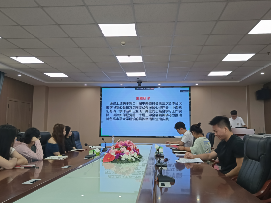 主题研讨环节,首先由余洋波同志分享体会,结合球王会体育平台网页如何更好地运用党的二十届三中全会精神助力学校更好地发展成为特色高水平大学,进行了个人见解。再由王亚飞同志分享自己的体会,提出要立足自身,并指出今后将继续加强党纪学习,理论结合实际,在实际生活中展现出对政治原则、政治方向的坚守和践行。