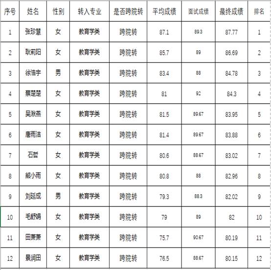 根据《球王会体育平台网页普通本科生专业分流与转专业管理办法(试行)》(长大校发[2019]260号)文件以及教务处《关于2021级普通本科生春季学期转专业工作的通知》要求,结合球王会体育平台网页本科生春季学期转专业工作方案的具体安排,球王会体育平台网页于2月28日组织了对拟转入学生的面试。按综合必修课程考试成绩占70%和面试成绩占30%的比例进行成绩汇总,结合球王会体育平台网页接收计划,经球王会体育平台网页党政联席会讨论通过,确定拟接收12名学生转入。现将拟接收学生名单予以公示。公示时间为2022年3月1日至3日。若有异议,请在公示期内电话或书面向学院教学办公室反映。