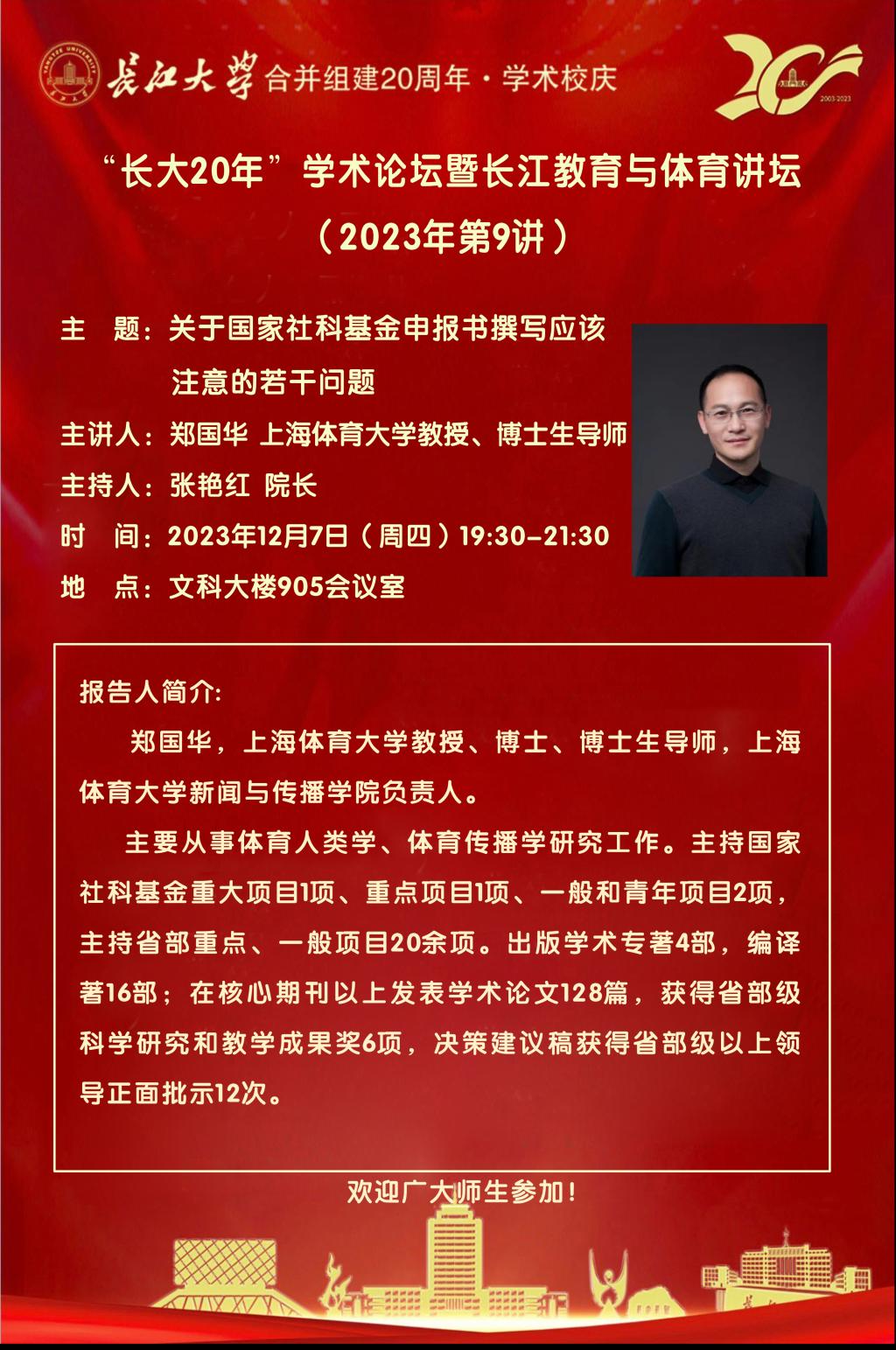 “长大20年”学术论坛暨长江教育与体育讲坛(2023年第9讲)