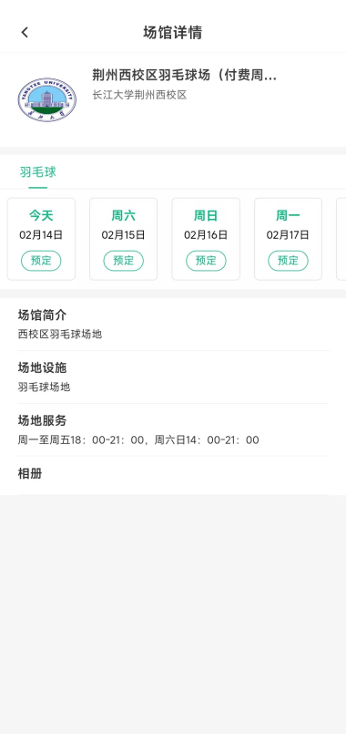 3.选择场地:选择好预约时间后,选择“包场”预约。点击确认前仔细核对预约的日期、时间、场地等内容是否准确无误。确认无误后,点击 “确定预约” 选项。预约完成后在预约场地开始时间前10分钟内达到场地并缴纳费用。