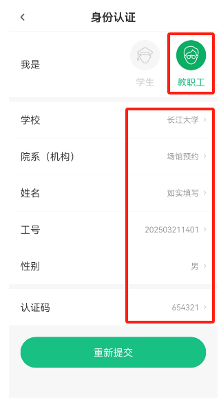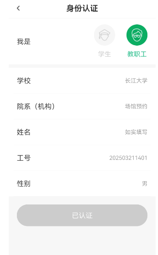 首先请在“华为应用市场”或“App Store”等应用下载平台搜索 下载 “步道乐跑” App. 完成下载后进行以下操作: 身份认证操作说明 【提交身份认证】 在“我的”页面,点击“立即认证”即可进入身份认证界面; 选择“教职工”并填写对应信息,学校选择:球王会体育平台网页,院系选择:场馆预约,姓名:如实填写,工号:填年月日时间 2025年3月21日14:39 如填:20253211439,性别:男或女,认证码:654321,后点击“认证”按钮即可提交认证申请。