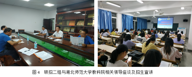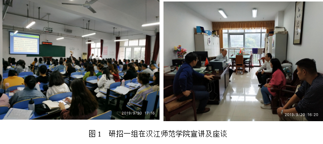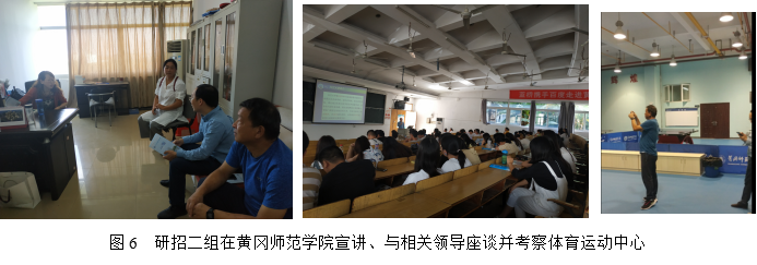 第二工作组由副院长熊猛带队,研究生导师王卫宁教授及研究生秘书卢小琴一行3人,于9月19日至20日前往东线的湖北师范大学、黄石理工学院、黄冈师范学院3所高校开展研招宣传活动。19日下午,研招二组与湖北师范大学教育科学学院李炎清副院长、刘刚副书记及心理学系李智勇主任进行座谈,熊猛副院长介绍了球王会体育平台网页研究生招生的专业分布、导师队伍、招生政策等情况,双方就“双一流”建设、实验室建设、教育硕士培养、博士师资的引进与培养等进行了深入交流。晚上7点,研招工作组在湖北师范学院教育大楼学术报告厅向有意向报考2020年硕士研究生的100余名学生进行宣讲。熊猛副院长从“球王会体育平台网页简介、球王会体育平台网页简介、2020年研究生招生专业与优惠政策”三个方面向同学们进行了详细介绍,并在互动交流环节一一解答了同学们提出的考研疑问。同学们普遍热情高涨,报考我校的兴趣很大,愿望强烈。9月20日上午,研招二组抵达湖北理工学院,分别与该校体育部吴新炎主任、师范学院周加胜副院长进行座谈交流,熊猛副院长向其介绍球王会体育平台网页研究生招生专业、导师队伍、招生政策等,并考察了其体育场馆。9月20日下午,研招二组来到黄冈师范学院,熊猛副院长向有意考研的教育类专业、体育类专业学生进行招生政策宣讲与现场答疑,并发放了招生宣传册,张贴了招生海报。随后与黄冈师范学院教育学院韩冰清副院长、文学院王艳艳副书记进行了座谈,就教育实习、师范生培养、科研水平提升、师资引进与培养等问题进行了交流,随后考察了该校体育运动中心。