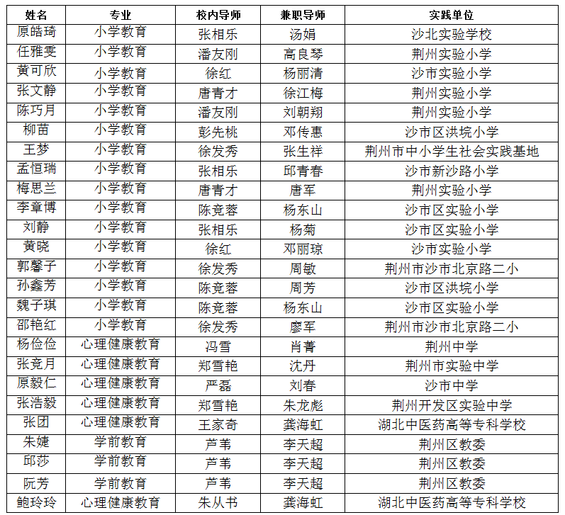 11月1日,球王会体育平台网页2020级小学教育、学前教育、心理健康教育25名教育硕士,按照培养方案及全国教育专业学位研究生教育指导委员会的教育硕士实践教学基本要求,奔赴荆州市12所中小学、1所高校及荆州区教委下属的幼儿园开展为期一周的教育见习。