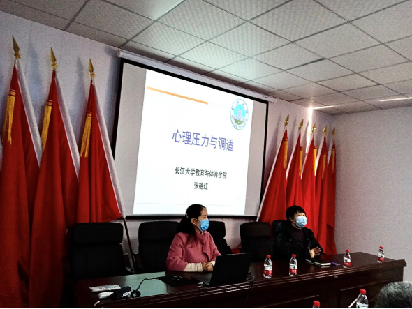 2020年12月30日下午,球王会体育平台网页张艳红博士应荆州开发区鱼农桥街道邀请,赴该街道杨家河社区举行心理服务公益讲座。鱼农桥街道工会王芳主席对张艳红博士的到来表示热烈的欢迎,并对杨家河社区的基本情况进行了介绍。王主席表示希望通过社区心理辅导缓解社区工作者的心理压力并改善心理情况。