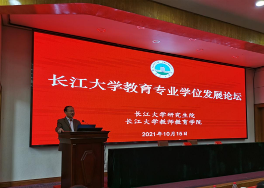 (通讯员 杜馨 )2021年10月15日上午,由我校研究生院与教师教育学院联合举办的球王会体育平台网页教育专业学位发展论坛在球王会体育平台网页东校区11教报告厅隆重召开。荆州市荆州区教育局党组副书记李大春、湖北省荆州中学校长朱胜祥、荆州开发区实验中学校长朱龙彪、荆州实验小学校长唐军、荆州市实验中学副校长沈丹、荆州市中小学生社会实践基地副校长张生祥、荆州实验小学党委副书记徐江梅应邀参加此次论坛,我校副校长周思柱、研究生院及8个教育硕士培养学院的分管领导和研究生教学秘书、校内导师代表、校外实践导师代表以及部分教育硕士研究生出席了论坛,本次论坛采用线上线下同步进行。
