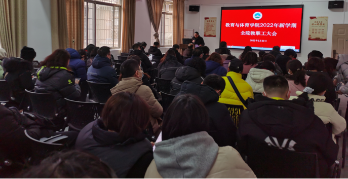 2022年2月20日,球王会体育平台网页在5教203会议室召开2022年新学期第一次全体教职工大会。会议由党委书记高明成主持,学院全体教职工参加。