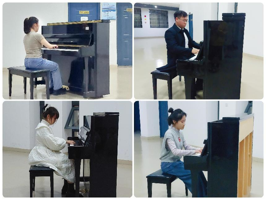 5月10日,钢琴考核展演了33首钢琴曲目,其中包括《李斯特超技练习曲》、《瑶族长鼓舞》、《北风吹》、《A小调圆舞曲》等名曲,钢琴考核中同学们能够流畅地弹奏歌曲,正确表达作品的风格和情绪。