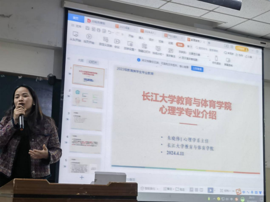 其后,朱晓伟老师进行了心理学专业介绍,着重介绍了心理学的学科性质和就业领域,并强调选择专业最关键的是兴趣、能力倾向与专业的匹配。接着,他向同学们讲解了本校的师资队伍、学科方向、研究兴趣和心理学优势与特色和近年科研项目,引导学生选择适合自己的专业方向。此外,西南大学刘颖教授与大家进行分享,她指出心理学带给她的三个帮助:方法、思路和情绪价值,她的经历鼓励和激励了同学们去勇敢选择自己喜欢的专业。