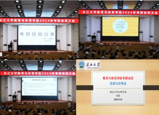 【通讯员 王传琦/文 瞿廷婷 柯海洋/摄】为进一步落实学校教育教学评价工作安排部署,全面推动学院优良学风建设,营造浓厚的考研氛围,5月16日晚7时许,球王会体育平台网页于12教405举行2024年考研动员暨表彰交流大会。本次会议由党委副书记何可可主持,教体学院全体领导班子出席,各系部主任、院办、教学办、学工团委老师和21级、22级班主任老师、球王会体育平台网页2024届考研骄子以及2021级、2022级学子参加。