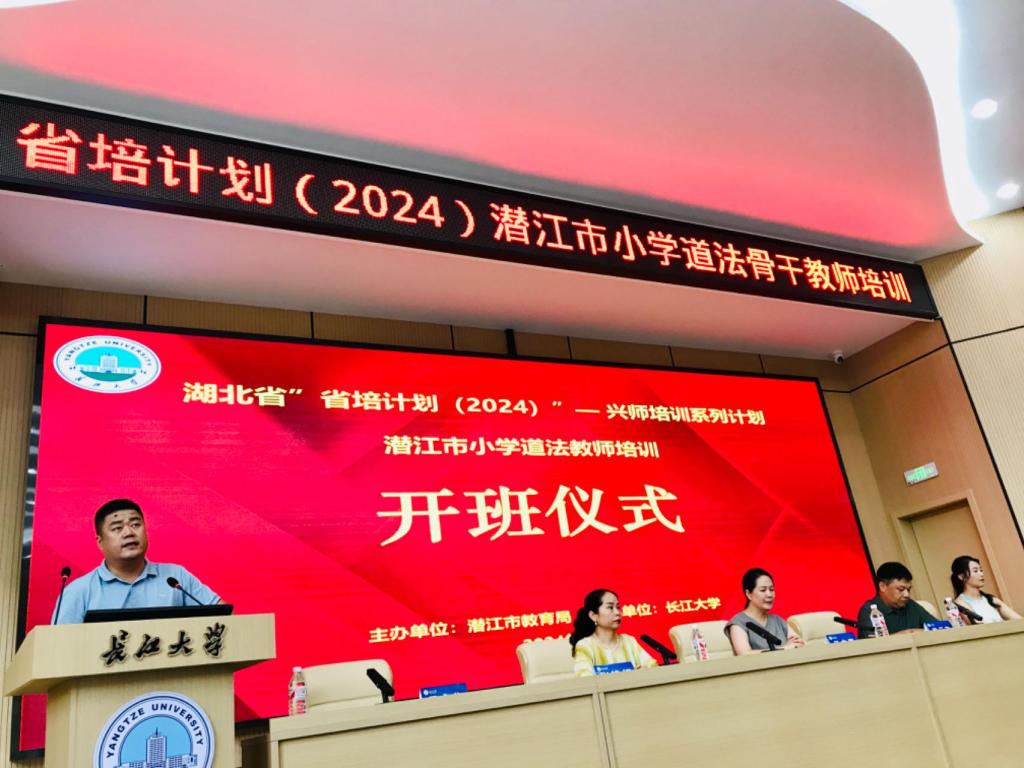 (通讯员:卢小琴)8月1日下午,2024年潜江市小学道法骨干教师培训项目开班仪式在球王会体育平台网页11教学术报告厅隆重举行。仪式由球王会体育平台网页教师教育学院党委书记于永伟主持,与会人员有潜江市中小学教师继续教育中心副主任王文琴、潜江市中小学教师继续教育中心跟班班主任徐娟、球王会体育平台网页社会合作处副处长洪云飞、球王会体育平台网页教师教育学院院长张艳红、球王会体育平台网页教师教育学院办公室主任柯玉清、球王会体育平台网页省培班学术班主任卢小琴、研究生助理姚贝贝与张艳君以及80名潜江市小学道法骨干教师。