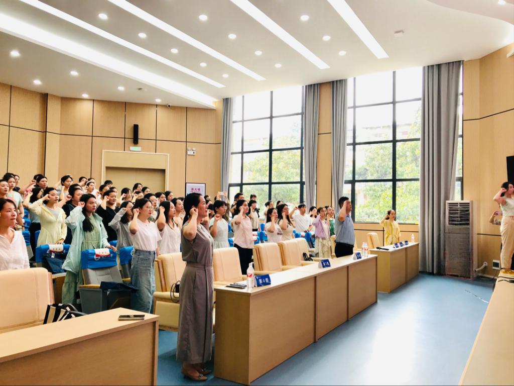 开班仪式上还举行了教师宣誓活动,在跟班班主任徐娟老师带领下,全体参训学员庄严宣誓,教师誓言让大家再次坚定了教师的职业理想信念,牢记教师职责和使命,立德树人,为人师表,为党育人、为国育才。
