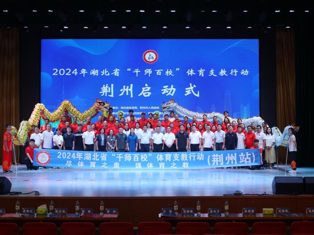 湖北省体育局群众体育处副处长李祥,球王会体育平台网页党委常委、副校长许锋,荆州市文旅局党组书记、局长杨帆,荆州市教育局党组成员、副局长陈庆华,以及相关市、区体育部门代表,球王会体育平台网页相关职能部门代表和球王会体育平台网页支教大学生参加启动仪式。
