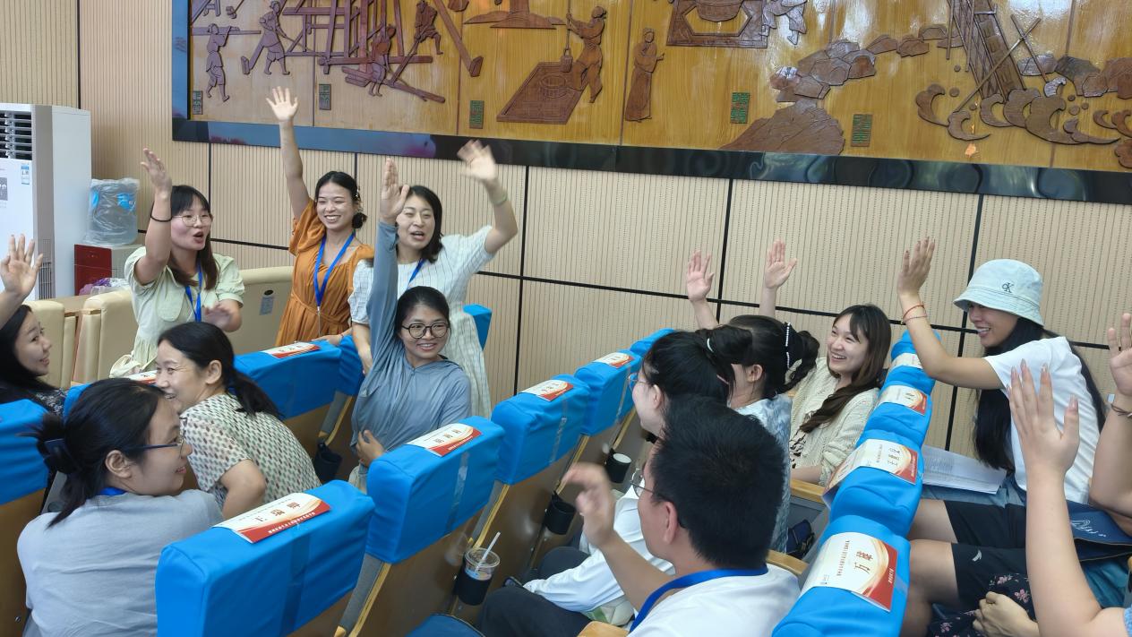恰逢立秋,室外骄阳依旧似火,室内活动庄重而热烈。班主任樊翠红老师带领全体学员开启了破冰之旅。首先是班主任助理张艳君带领大家一起跳起了暖场舞《开心拍拍拍》,原本稍显拘束的老师们逐渐放松下来,接下来是球王会体育平台网页素质拓展专业的姜德昆老师带大家做起了《欢乐喜相逢》的游戏,现场气氛慢慢活跃了起来。