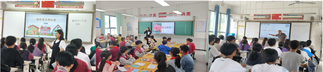 小学学段的送教同样精彩纷呈,涵盖语文、数学、英语、科学、道法等科目。荆州骨干教师带来的示范课充满趣味与智慧,巧妙的情境创设和有效的互动活动,充分激发了学生的学习兴趣,展示了“ 以 学定教 ”的课堂魅力,为乡村小学课堂改革提供了鲜活样本。