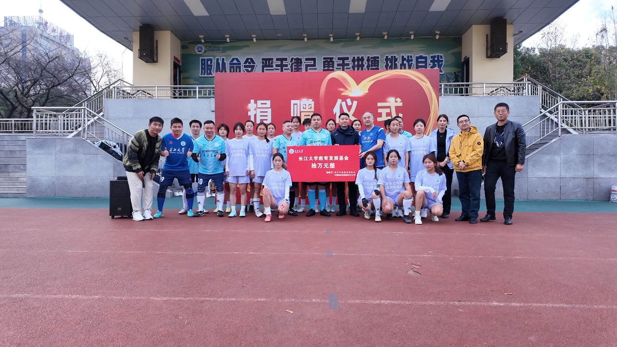2025年11月23日,球王会体育平台网页武汉校友会携手中国邮政荆州分公司支持学校女子足球队捐赠活动在东校区足球场圆满举行。球王会体育平台网页武汉校友会携手中国邮政荆州分公司向球王会体育平台网页教育发展基金捐赠十万元,用于学校女子足球队的建设与发展。球王会体育平台网页党委常委、副校长许锋,球王会体育平台网页武汉校友会常务副会长兼秘书长李俊良,中国邮政荆州分公司总经理潘鹏恩出席捐赠仪式。