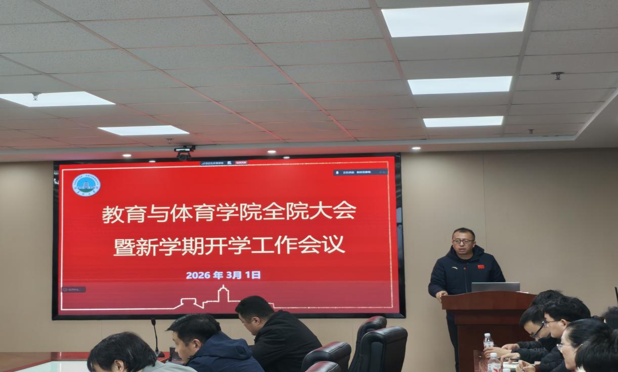 随后,张院长为全院教职工作题为“教以启智,体以强身,心以铸魂”的专题报告,报告全面回顾了学院2025年工作成效:学科建设稳步推进:教育专业博士点立项建设稳步推进, 体育学、教育学等学位点评估均获合格;科研突破成效显著:获批国家社会科学基金一般项目1项, 省部级科研成果奖实现层次与数量双提升;人才培养硕果累累:本科专业建设成效显著, 师生在教学竞赛中屡创佳绩, 研究生在全国"田家炳杯"等赛事中斩获10项大奖;育人模式特色凸显:国际化办学持续推进,"以体育人、以心育人、以教铸魂、以爱润心"的育人模式成效凸显,斩获全运会历史首枚奖牌;社会服务多点开花:承办多项国培、省培项目。同时, 报告也指出学院在学科特色凝练、平台项目成果突破、人才培养质量、师资队伍结构等方面仍需提升。