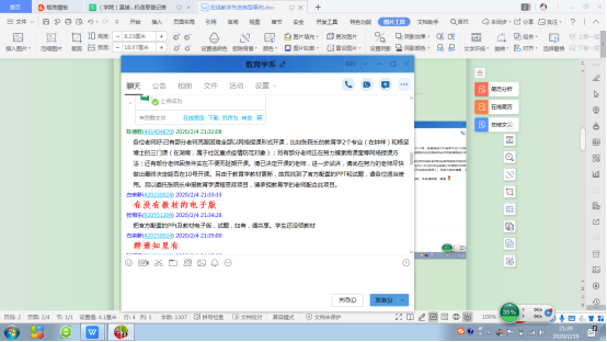 (3)强化在线教育的校本培训和系本培训。技术畏难是教师们接受在线教学的一个主要难点,针对此问题,首先要求老师按时参加学校组织的培训,并转发关于雨课堂的培训课件,并反复强调其基本功能和简易性,其次掌握并推广qq群语音屏幕分享、腾讯课堂、腾讯会议等更简易的工具(先后手把手培训代课的小学校长、书记、教育局副局长等人),再次分享北京大学教育学院在线教学的基本做法,突出其与传统教学的差异,要求老师们重视教学质量,最后为师范生的教育学课程提供电子教材、课件、试题,为班级管理课程提供课件、教学案例和实务手册等配套资料。(全是我自己在网上找的)