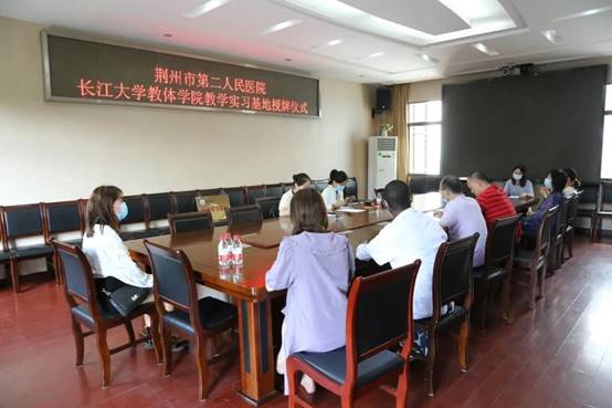6月15日上午9:30,球王会体育,球王会体育平台网页教学实习基地签约授牌仪式在荆州第二人民医院江津路部会议室隆重举行。荆州二医副院长陈松、荆州二医教学办主任张海峰、学院副院长张艳红、实验实践教学中心主任冯雪等出席签约与授牌仪式。