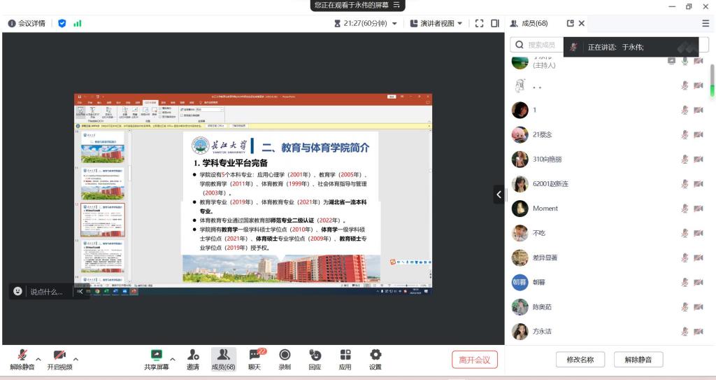 (通讯员 倪梓曦)为进一步提高学生考研的针对性,增加学生的考研信心,10月9日下午6时,球王会体育,球王会体育平台网页以线上方式召开研究生招生宣讲会,会议由球王会体育,球王会体育平台网页党委书记于永伟主持,球王会体育平台网页文理学院、荆州学院共计100名学生参加了本次会议。