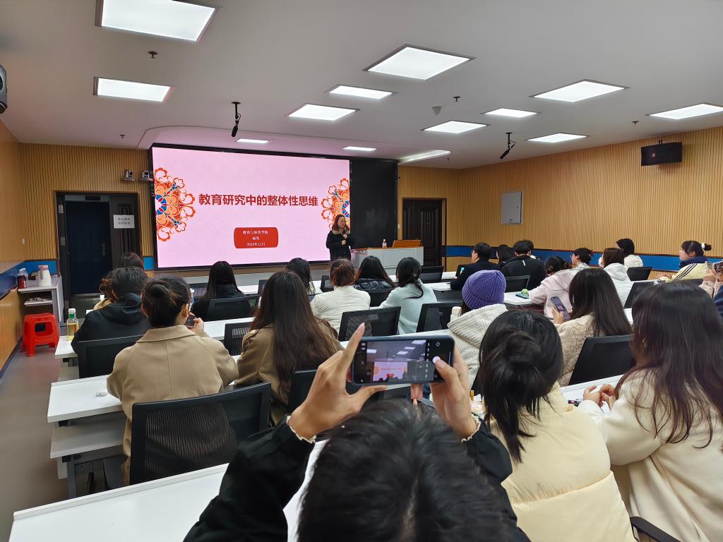 (通讯员 张苑苑)2024年11月29日晚7点,球王会体育,球王会体育平台网页第六届研究生学术科技节校内导师论坛第三讲在文科大楼910报告厅隆重开讲,整个会场座无虚席。本次特别邀请杨雪博士主讲,讲座由院研究生会学科部张雨晴同学主持,球王会体育平台网页2023级、2024级教育学研究生参与了讲座。