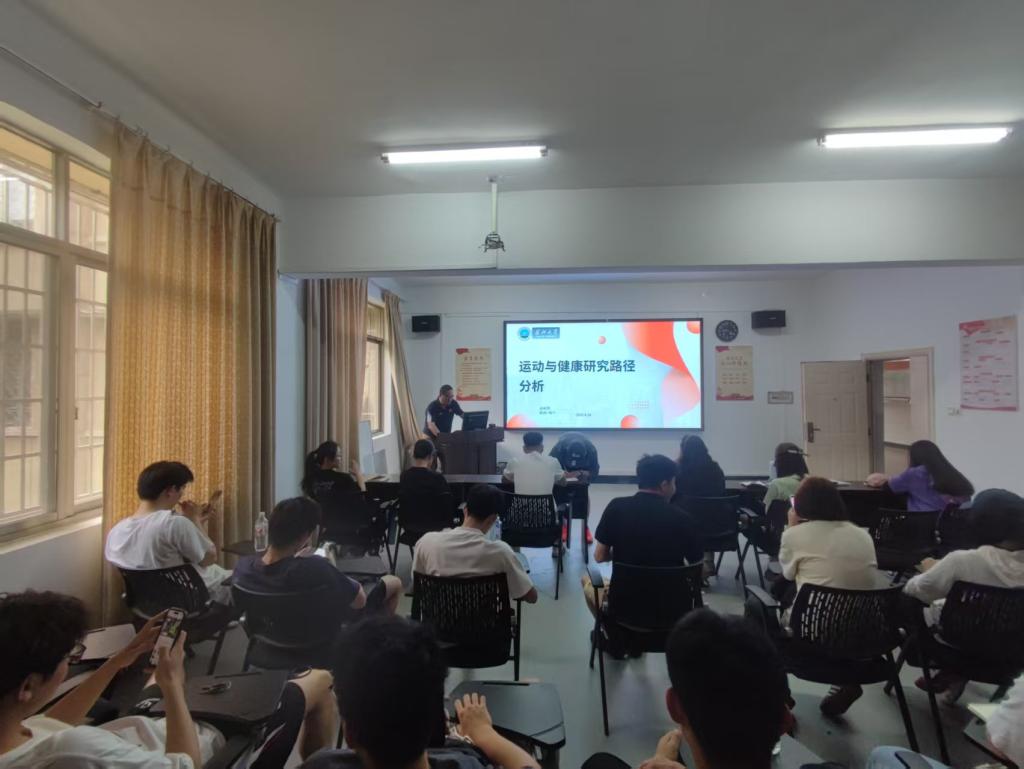 (通讯员:王曼云/文 陈涛/摄)2025年4月16日下午,球王会体育平台网页“求实导师学术沙龙”之“运动与健康研究路径分析”在5教203报告厅顺利举行。博士生导师袁新国教授主讲,球王会体育平台网页体育类研究生及部分青年教师与会。