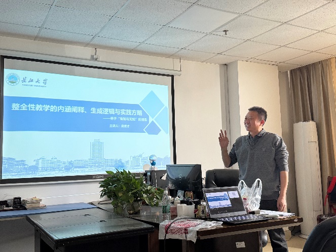 报告中,唐青才老师详细阐释了整全性教学的内涵,包括如何通过双循环学习深化学生对知识的全面理解,如何在教学过程中处理有知与无知的关系,如何通过逐层提升学生的转化能力来发展其高阶思维能力等。他还特别强调了整全性教学的实践方略,包括内容的深度挖掘和评价的全息观照等。