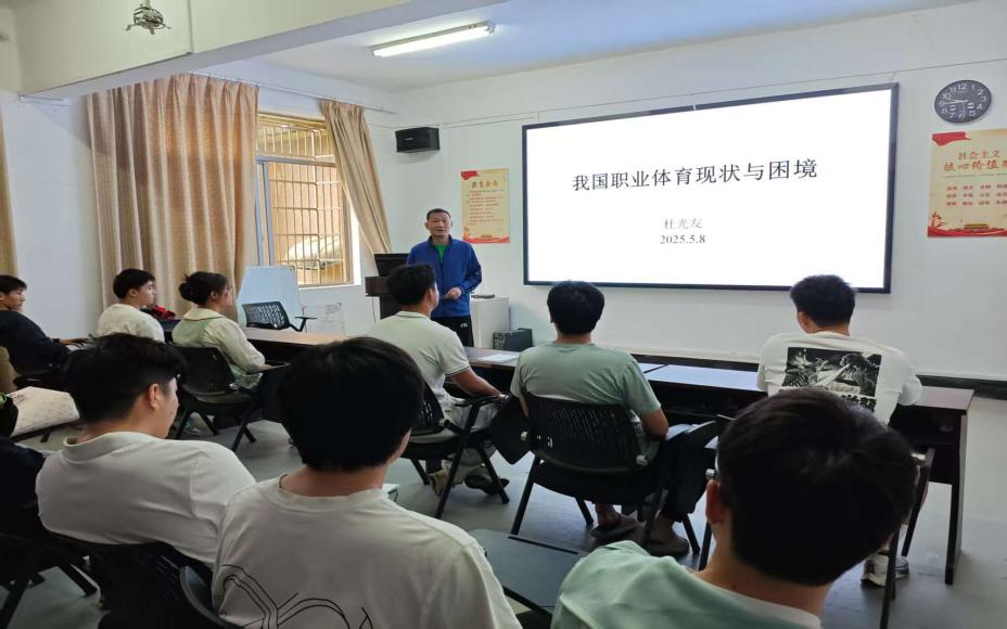 (通讯员:林达聪)2025年5月8日下午,球王会体育平台网页“求实导师学术沙龙”之“我国职业体育现状与困境”在5教203教室举行,杜光友副教授主讲,本次讲座吸引了各年级体育类本科生与研究生参与。