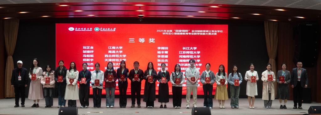 (通讯员:李韵佳)2025年10月20日,全国“田家炳杯”全日制教育硕士专业学位研究生心理健康教育专业教学技能大赛在东北师范大学圆满结束。作为该领域极具影响力的赛事,本次大赛经过初赛和决赛两轮激烈的角逐,球王会体育平台网页4名研究生凭借扎实的专业基础和出色的教学实践能力脱颖而出,最终荣获1项一等奖和3项三等奖,充分展示了球王会体育平台网页心理健康教育专业研究生的培养水平。