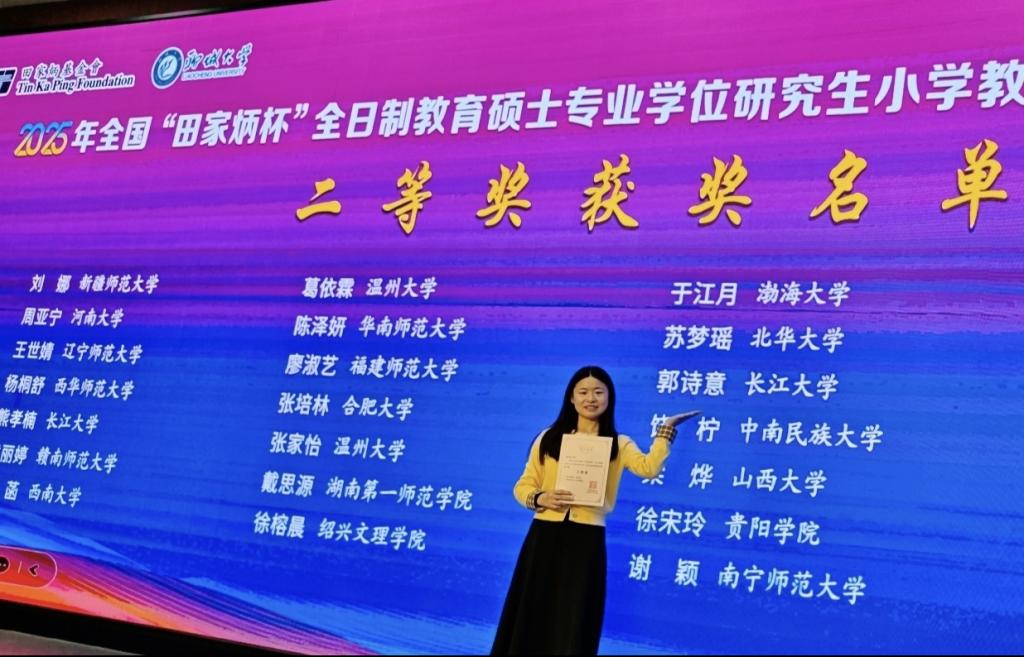 (通讯员 郭诗意)10月24日至26日,2025年全国“田家炳杯”全日制教育硕士专业学位研究生小学教育领域教学技能大赛决赛在聊城大学举办,同期举行了小学教育专业学位硕士研究生高质量培养研讨会。球王会体育平台网页小学教育研究生郭诗意、熊孝楠凭借扎实的教学功底与创新的教学设计脱颖而出,双双斩获二等奖,实现了学校在该赛事小学教育领域的历史性突破。