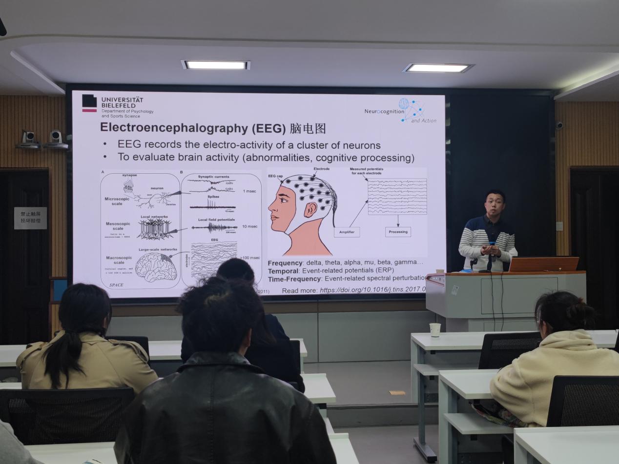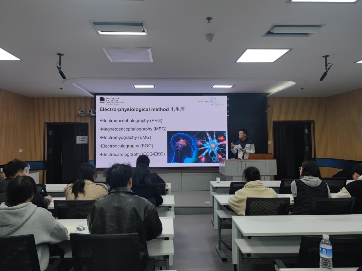 于淋博士谈到伴随着神经科学技术的不断发展,在体育与运动科学研究特别是在运动心理学的相关研究中,研究者们越来越多地开始使用认知神经科学的研究方法来探索与认知过程相关的神经机制问题。于淋博士首先为大家详细介绍了电生理的研究方法,分别论述了如何运用脑电图(EEG)、脑磁图(MEG)、肌电图(EMG)、眼电图(EOG)以及心电图(ECG)来进行体育运动的测量以及目前在研究中的应用和实践。