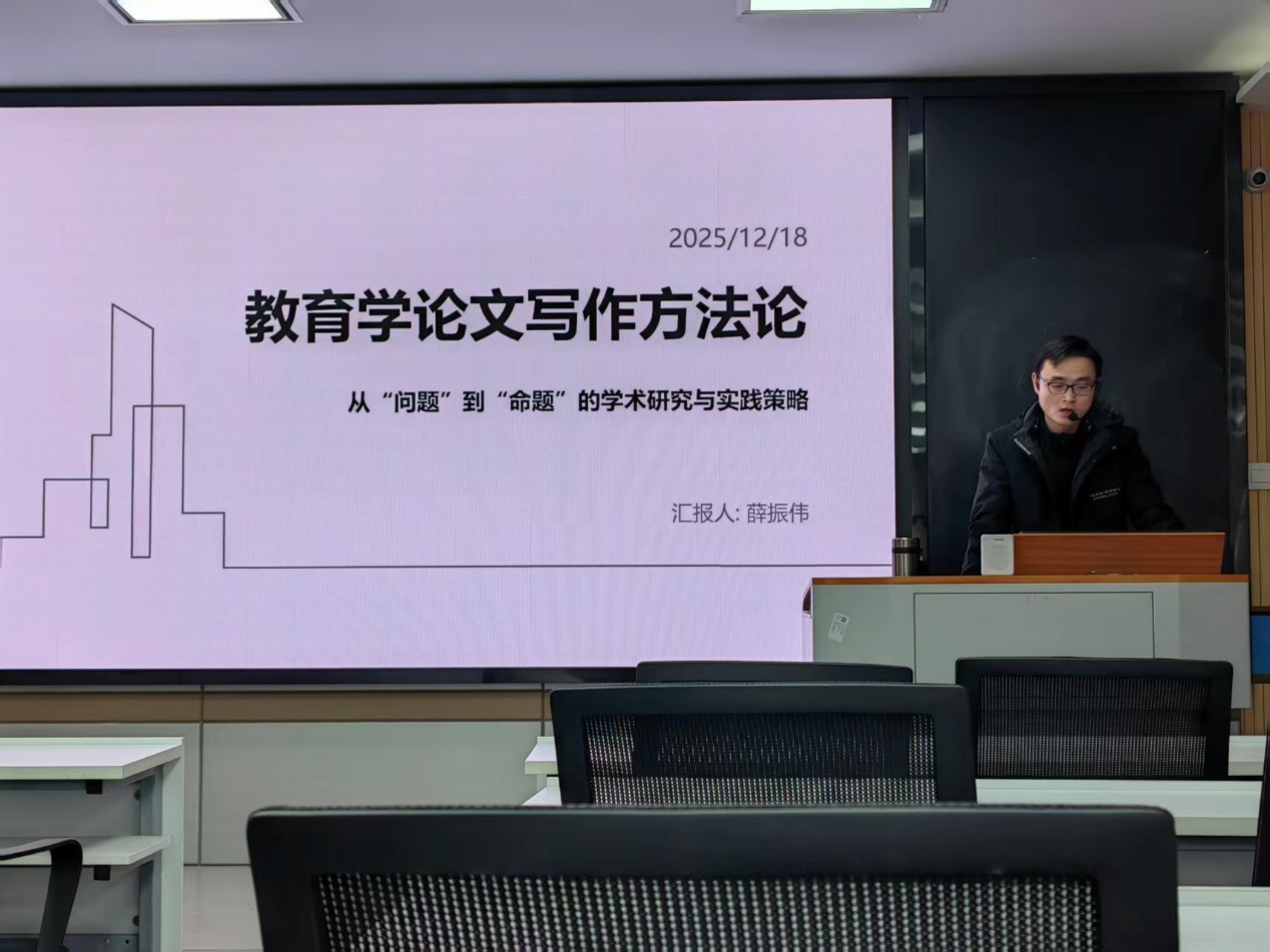 (通讯人 亓少润)2025年12月18日下午2时30分,球王会体育,球王会体育平台网页第七届研究生学术科技节校内导师论坛最后一场在文科楼910报告厅成功举行,本期的主题是《教育学论文写作方法论》。本次报告由严磊老师主持,薛振伟老师担任主讲人,教育类全体研究生到场参与学习。