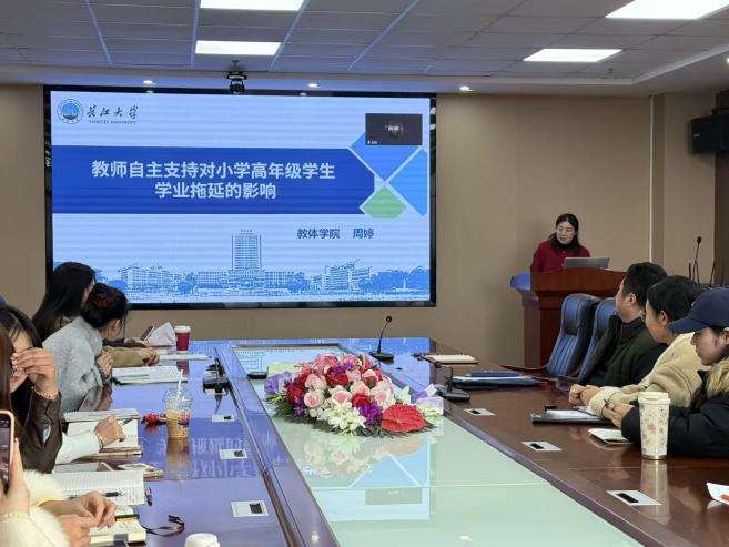 周婷老师以“教师自主支持对小学高年级学生学业拖延的影响”为题,分享了最新实证研究成果。报告系统揭示了教师自主支持影响小学高年级学生学业拖延的内在作用机制,证实教师自主支持可通过提升学生的成长型思维与学业浮力水平,显著减少学生的学业拖延行为。报告同时阐述了该研究的理论价值与实践启示,明确了后续扩大样本范围、开展纵向追踪研究、探索针对性干预方案的研究规划,为基础教育领域相关实证研究与教育实践提供了具体参考。