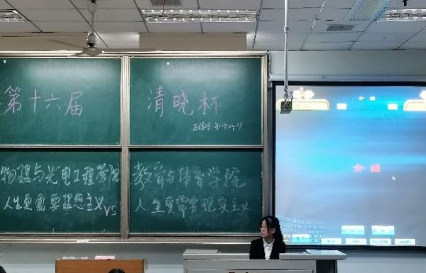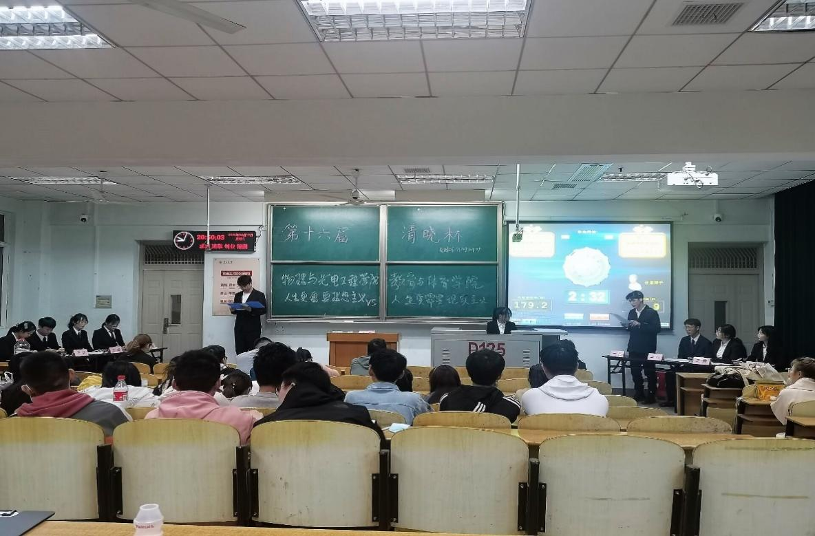 (通讯员 蔡彪)4月10日晚8时,球王会体育平台网页2021年“清晓杯”辩论赛首轮比赛在球王会体育平台网页东校区13教D-125打响,物理与光电学院和球王会体育平台网页选手作为本场比赛的正反方辩手就“人生更需要理想主义”、“人生更需要现实主义”辩题展开了激烈辩论。