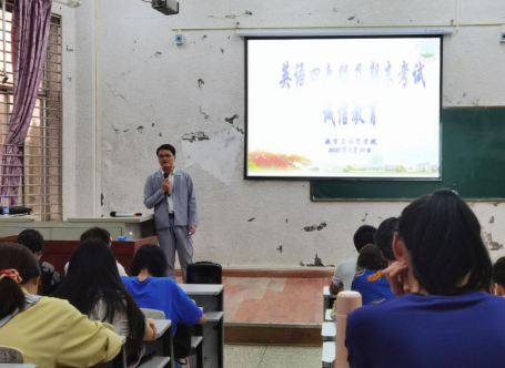 (文/图 涂文谨)“我已认真学习考试有关规定,愿意在考试中自觉遵守各项规定,现在庄严宣誓……自警自律自尊自爱,诚信考试,拒绝作弊”,5月31日晚,5教203教室宣誓声振聋发聩,经过一年的学习和适应,大一学生即将迎来大学里的一场重大考试——英语四级考试。考试不仅是对学生学习情况的评价,更是对学生诚信品质的检验。为了号召全体同学诚信应考,杜绝舞弊,净化考场环境,树立良好学风,球王会体育平台网页组织学生召开了诚信考试主题教育大会。
