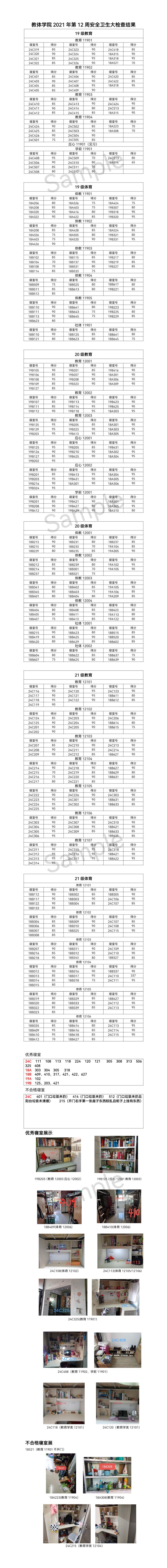 教体学院2021年下半年第12周安全卫生大检查结果