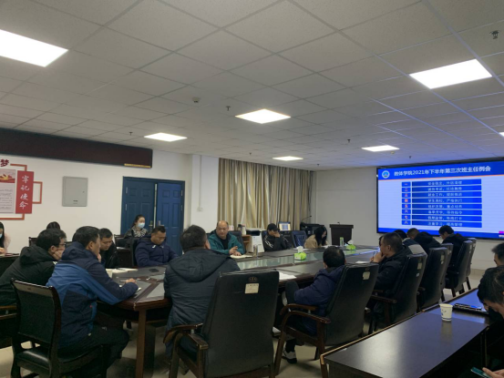 临近期末,为做好球王会体育平台网页2021年秋季学期学生日常管理工作,12月16日,球王会体育平台网页在文科大楼905召开本学期第三次班主任例会,党委书记高明成、院长张相乐及全体班主任老师参与此次会议。会议由党委副书记李则俊主持。